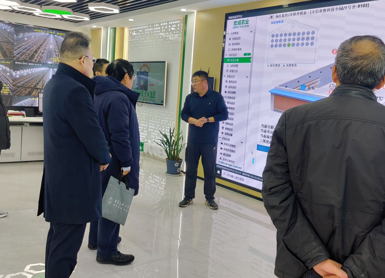 调研期间,专家团队参观了企业的智能控制中心及示范养殖场,了解了当前国内肉鸭养殖的发展状况以及山东泰安在肉鸭市场中的领 先地位。参观过程中,专家团队对天信农牧在动物福利设施研发和健康养殖技术应用方面的创新成果给予了高度评价。